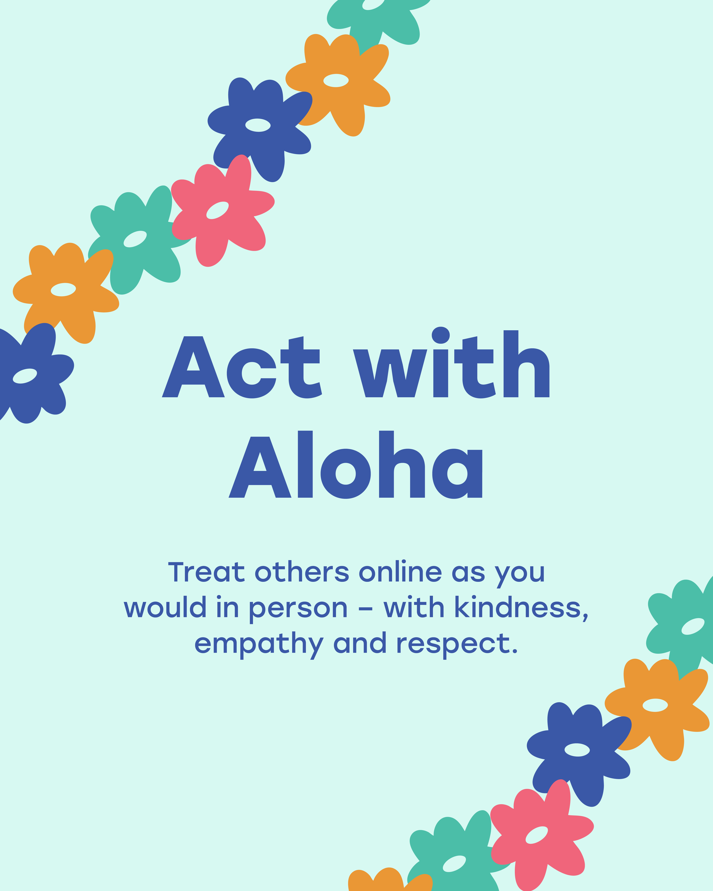In partnership with the Hawai‘i State Department of Education (DOE), the Hawai‘i State Department of Health’s Child and Adolescent Mental Health Division (CAMHD), the Hawai‘i State Student Council and the Hawai‘i State Youth Commission, the campaign encourages everyone to practice five principles of digital aloha when online.